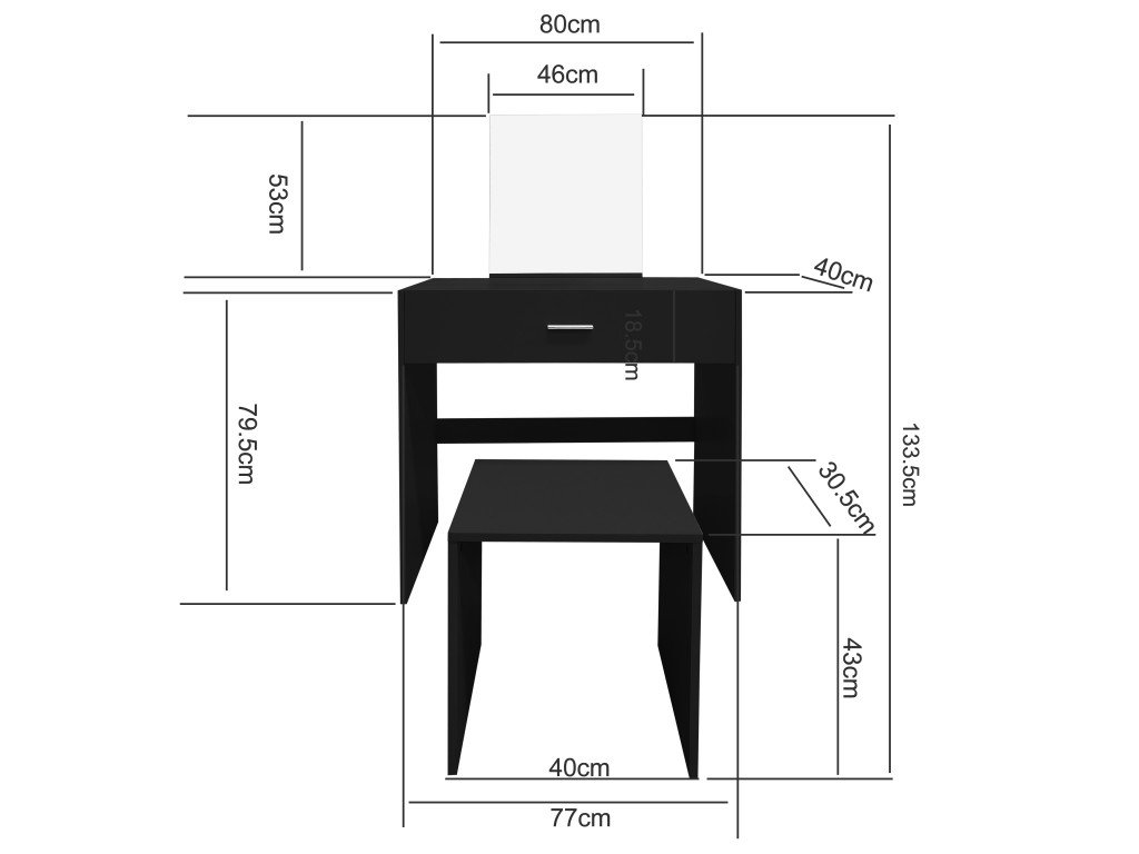 Specifikace toaletního stolku.